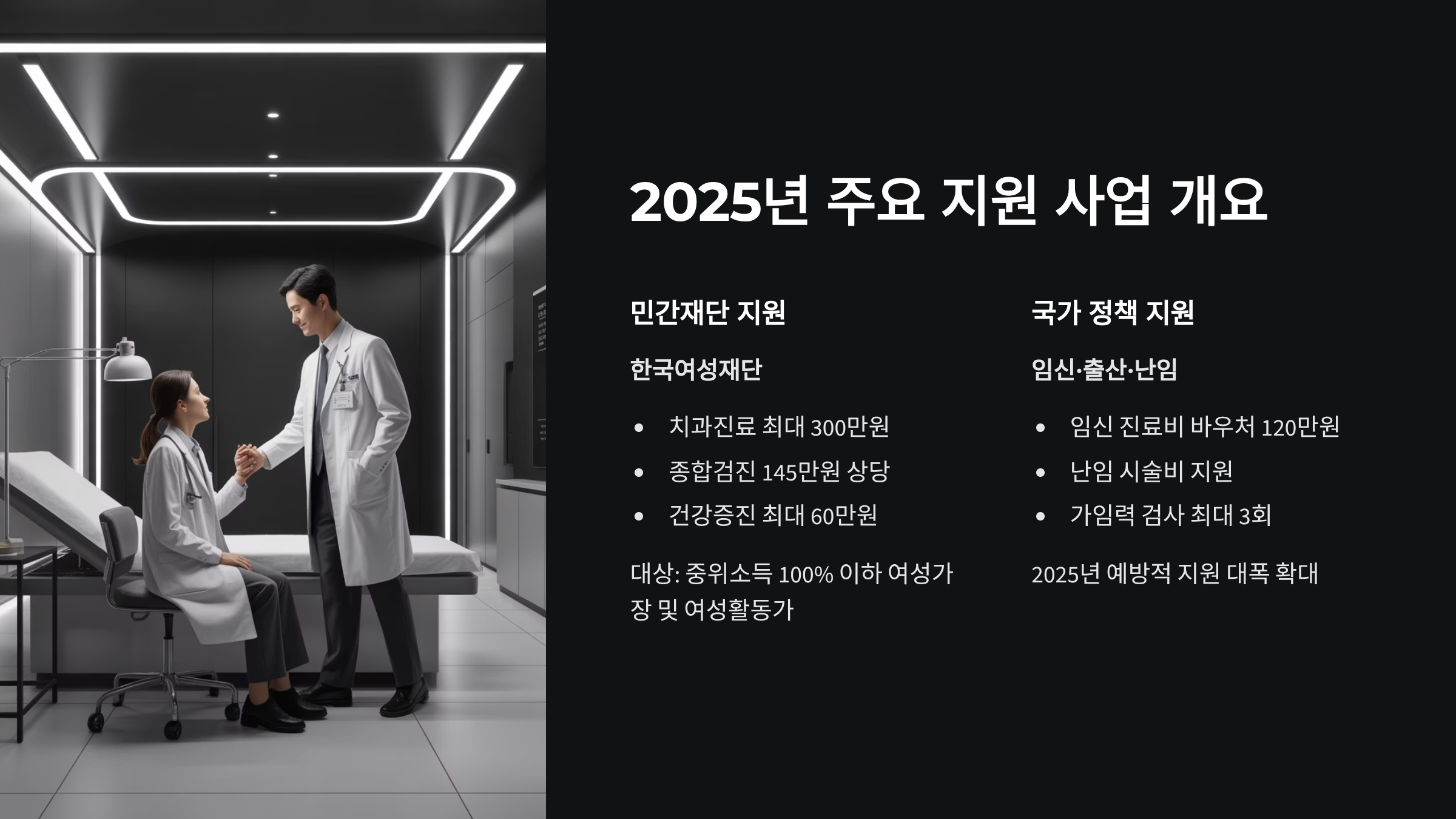 2025년 가장 주목할 만한 여성건강 지원금 확대 정책입니다. 임신·출산 고위험 요인을 조기에 발견하기 위한 검사비를 지원합니다.