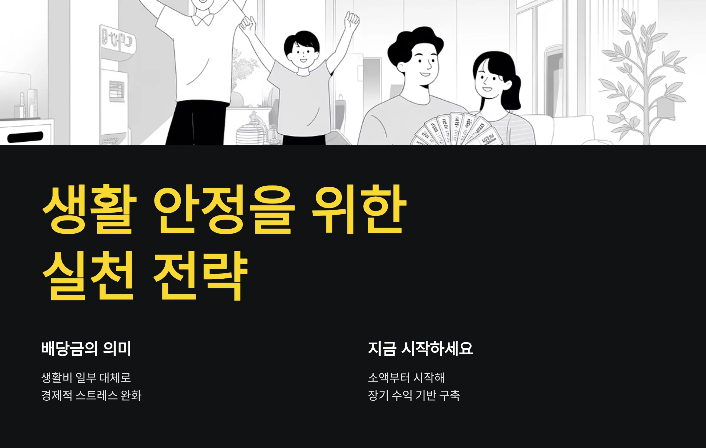외벌이집 월100만원 배당금 비결은 단순히 고수익을 노리는 투자라기보다는, 생활의 안정성을 높이기 위한 실천 전략입니다. 배당금이 생활비의 일부를 대신해줄 수 있다면, 외벌이 가정의 경제적 스트레스는 상당 부분 줄어들 수 있습니다. 지금부터라도 소액으로 시작해 장기적인 수익 기반을 만들어 보시길 바랍니다.