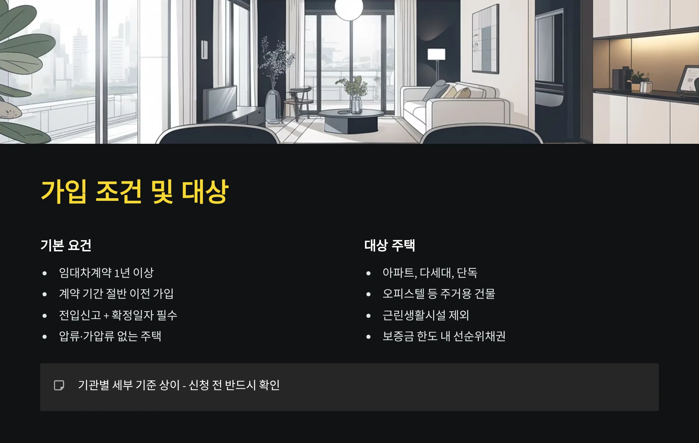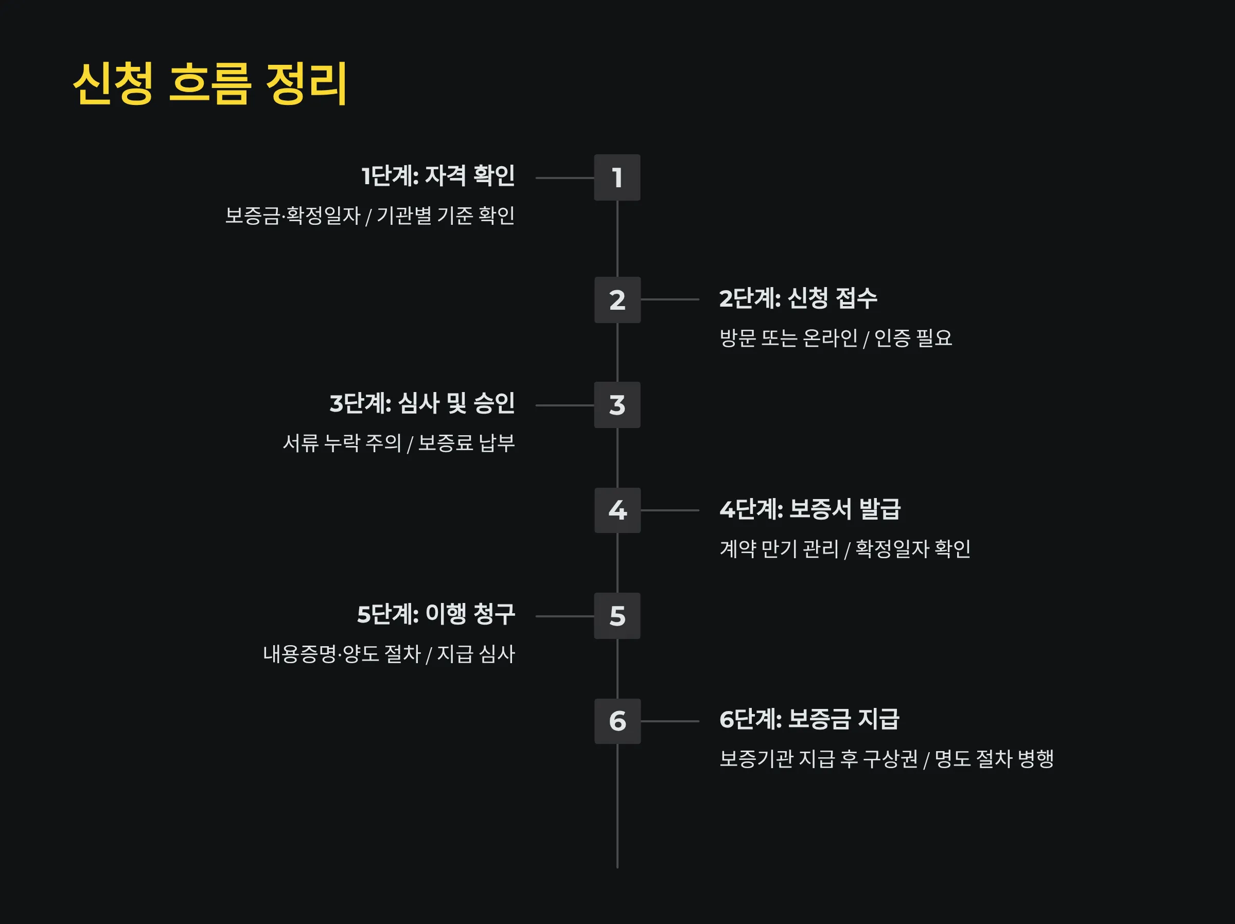 1) 먼저 보증기관이나 취급은행을 통해 보증금 상한, 대상 주택 여부, 가입 가능 시점을 확인합니다.
