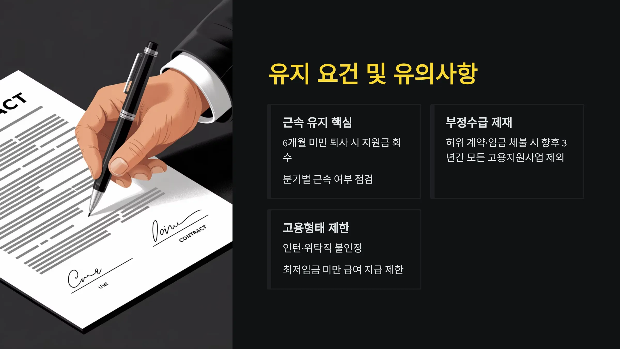 청년 일자리 도약 장려금은 근속 유지가 핵심입니다. 6개월 미만 퇴사자는 지원금 회수 대상이 되며, 1년 단위로 분기별 점검을 통해 근속 여부를 확인합니다. 또한, 기업이 허위 계약·임금 체불 등 부정수급을 한 경우 향후 3년간 모든 고용지원사업에서 제외됩니다. 청년의 고용형태가 인턴·위탁직이면 인정되지 않으며, 청년의 급여 수준이 최저임금 미만일 경우도 지급이 제한됩니다. 따라서 처음 계약 단계부터 청년 일자리 도약 장려금 기준에 맞춰 설계하는 것이 중요합니다.