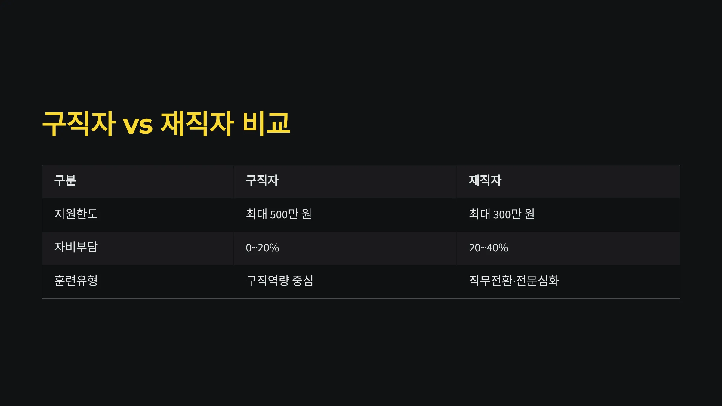 | 훈련유형 | 구직역량 중심 | 직무전환·전문심화 |