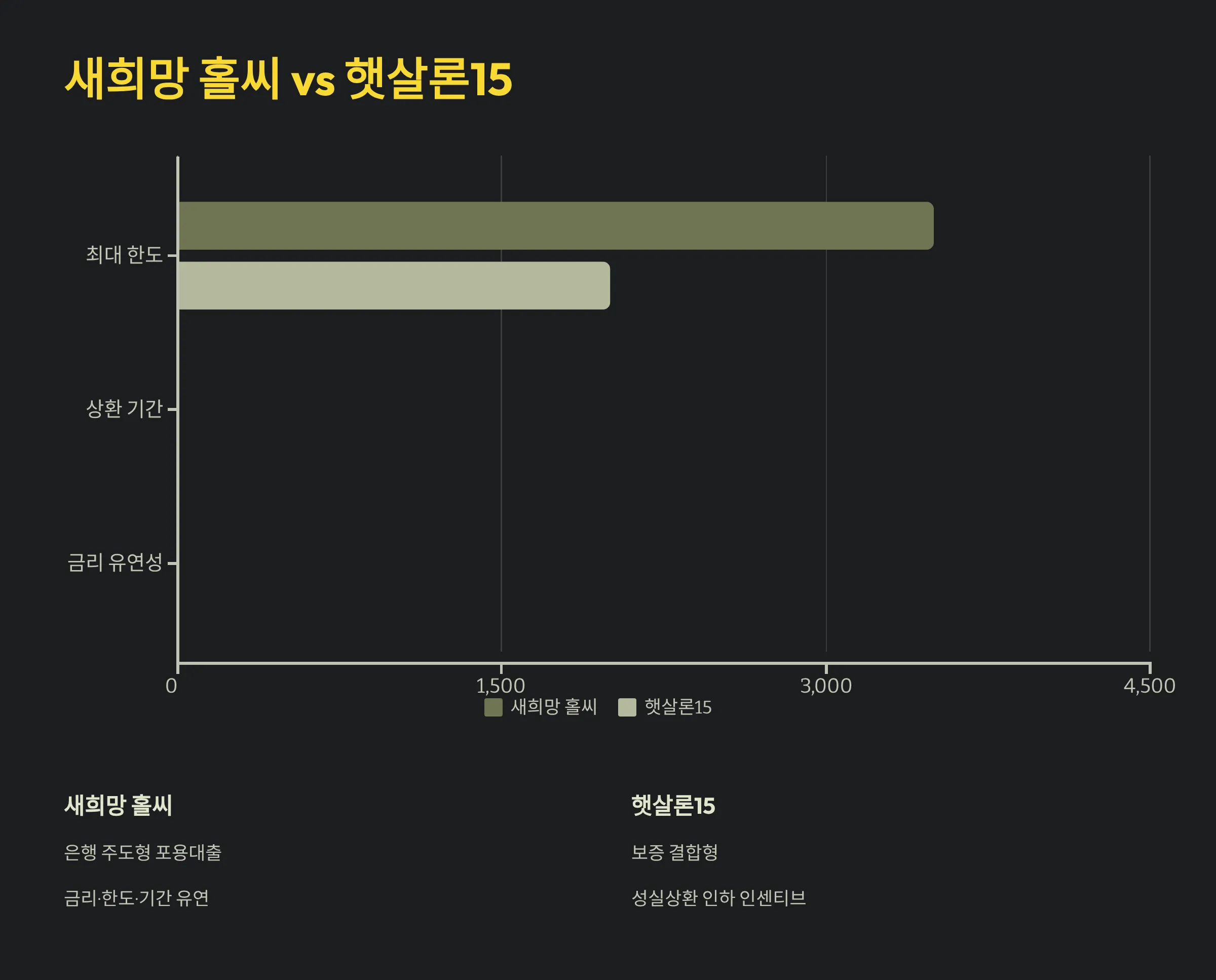 비교표① 새희망 홀씨 vs 햇살론15 핵심 차이