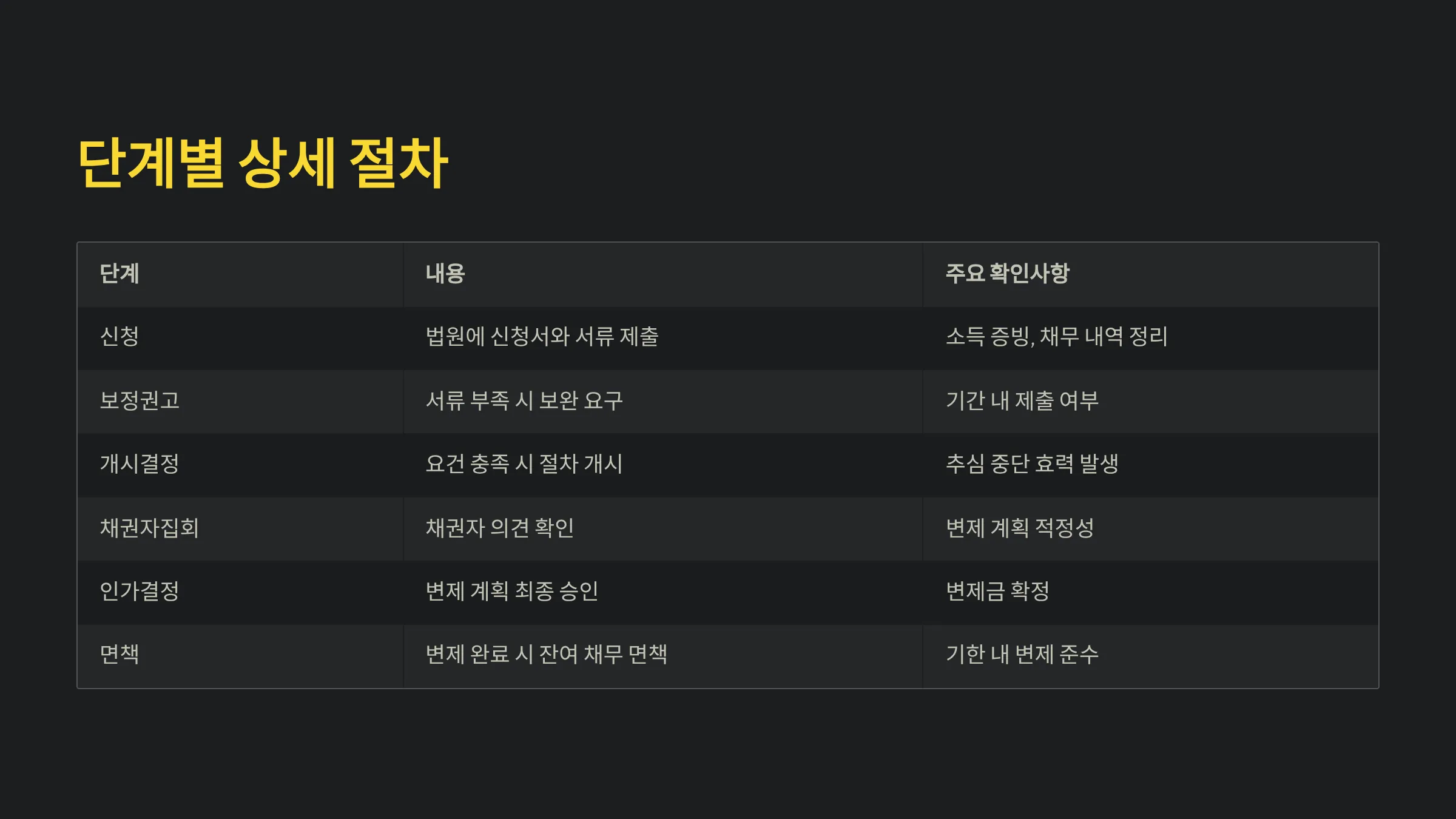 개인회생 절차 상세 흐름 비교
