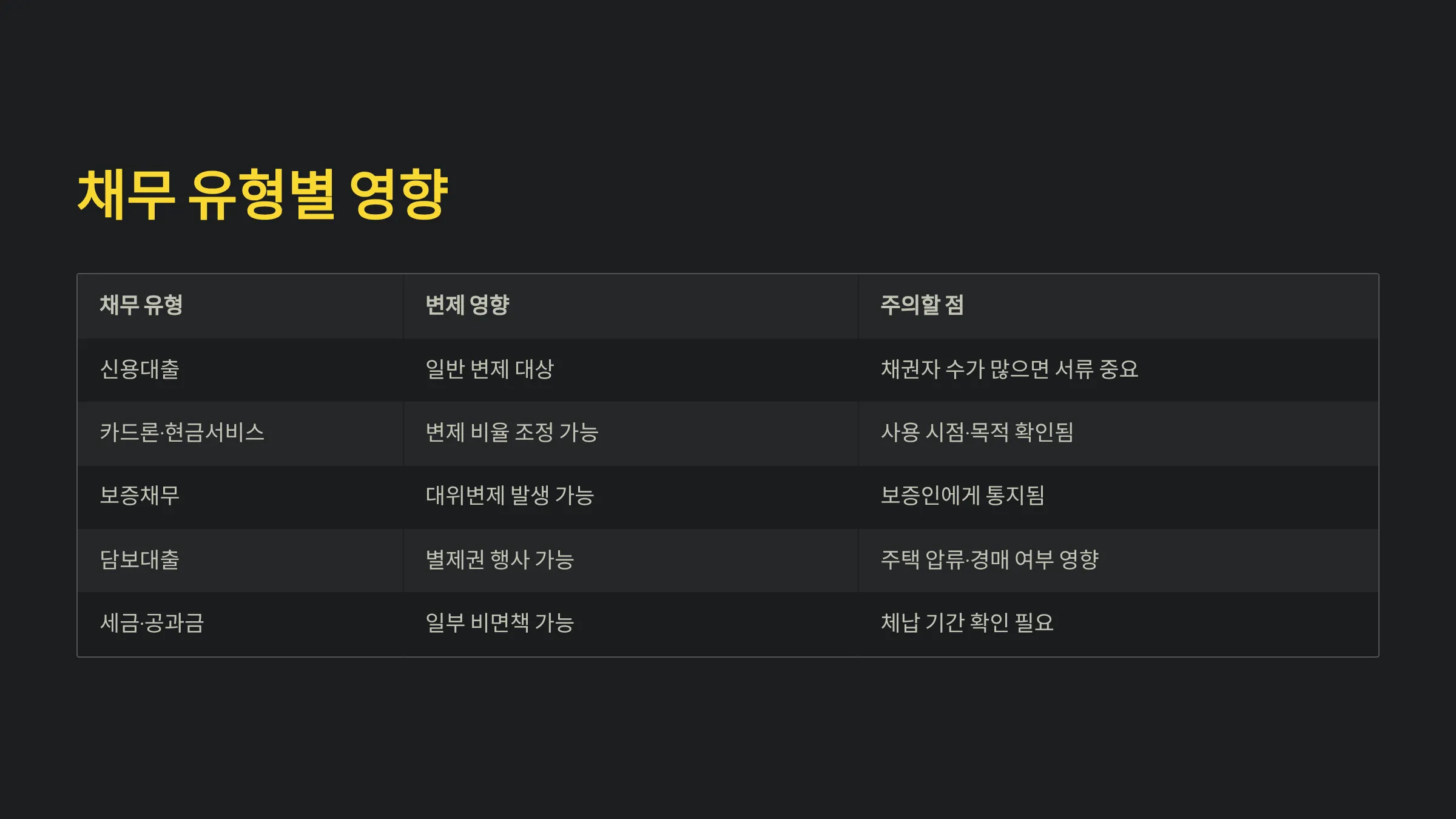 채무 유형 변제 영향 주의할 점
