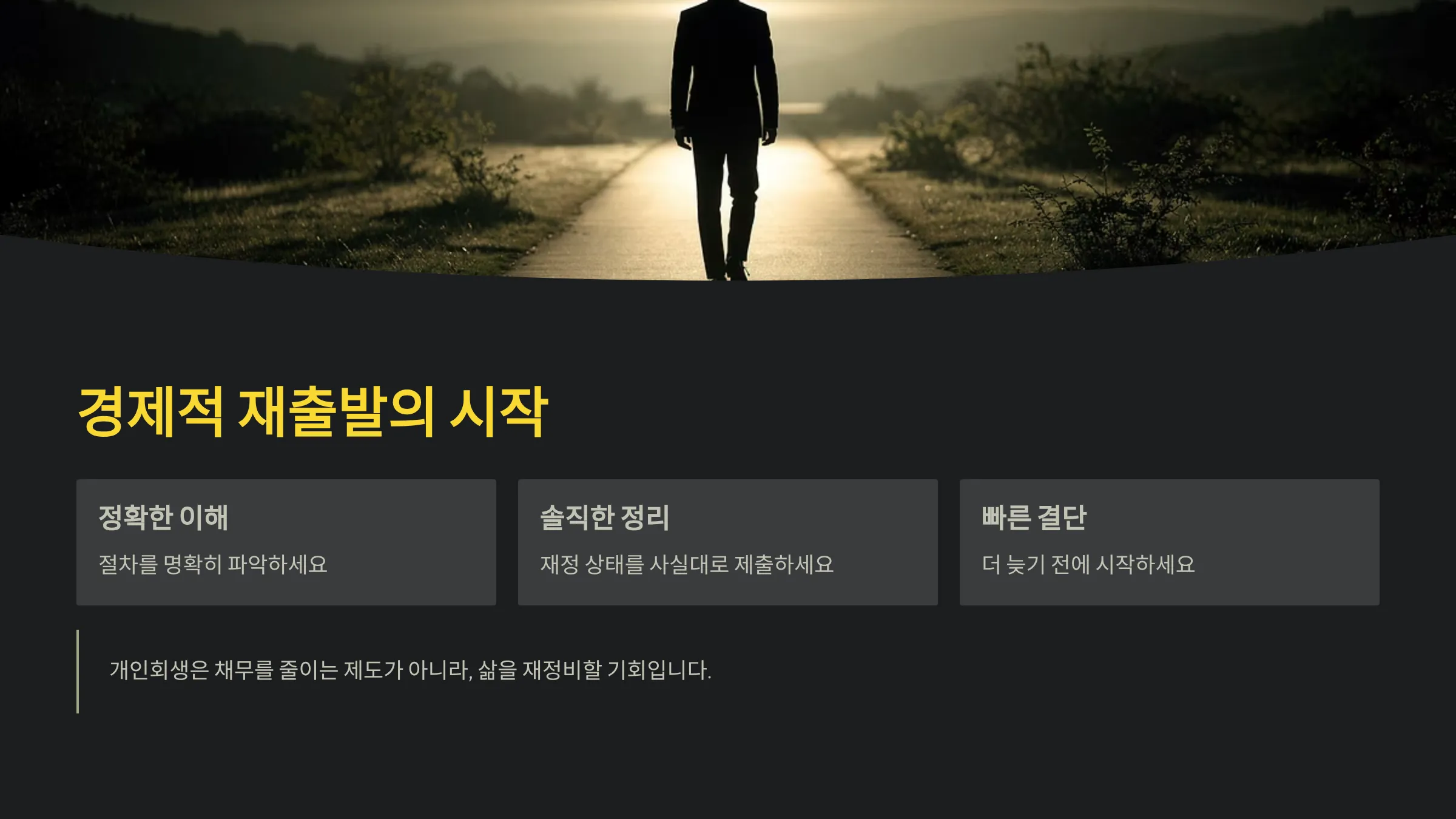 개인회생은 단순히 채무를 줄이는 제도가 아니라, 다시 경제활동을 정상화하고 삶을 재정비할 기회를 주는 제도입니다. 절차를 정확히 이해하고 자신의 재정 상태를 솔직하게 정리하면 훨씬 빠르게 인가와 면책까지 도달할 수 있습니다. 지금 채무 문제로 일상이 무너지고 있다면 더 늦기 전에 개인회생 절차를 고려해 보시기 바랍니다. 경제적 재출발은 생각보다 훨씬 가까운 곳에서 시작될 수 있습니다.